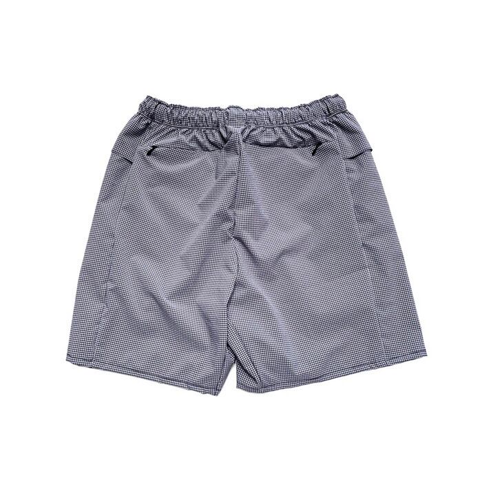 わずかに凹凸のあるルックスが特徴のシアサッカーギンガムランパンツ。清涼感のある印象そのままに、濡れても肌に張り付きにくく、ストレッチの効いた快適な穿き心地です。左右のフロント、サイド、バックに6つのポケットを配置。サイドのポケットは浅めでスマートフォンを入れても揺れが少ない設計になっています。ウエストはゴム+紐仕様。インナーは付属しておりません。軽量でシワになりにくくケアも楽チン。遠目には無地に見えるくらいの細かなギンガムチェックなので可愛くなり過ぎず、柄物のトップスも合わせてもうるさくなりません。ランニングなどのアクティビティーはもちろん、普段着としても使える汎用性をもつショーツです。