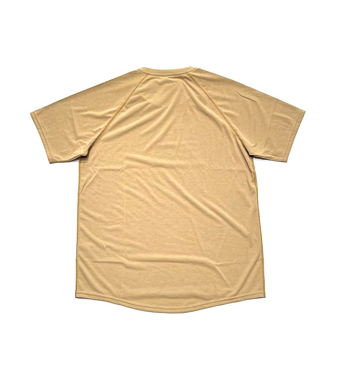 本体素材には、ペットボトル由来のリサイクルポリエステル《policott®》を使用。まるで綿のようなやわらかな肌触りながら、速乾性やUVカット、ストレッチ性も備え、アクティブなシーンから日常使いまで幅広く対応します。プリントには、ユーズド感のある“カスレ”を生かしたデザインを施し、洗うほどに風合いが増していくのも魅力。縫製にはフラットシーマを採用し、肌あたりも快適。着る人にも地球にもやさしい、新しいベーシックです。
