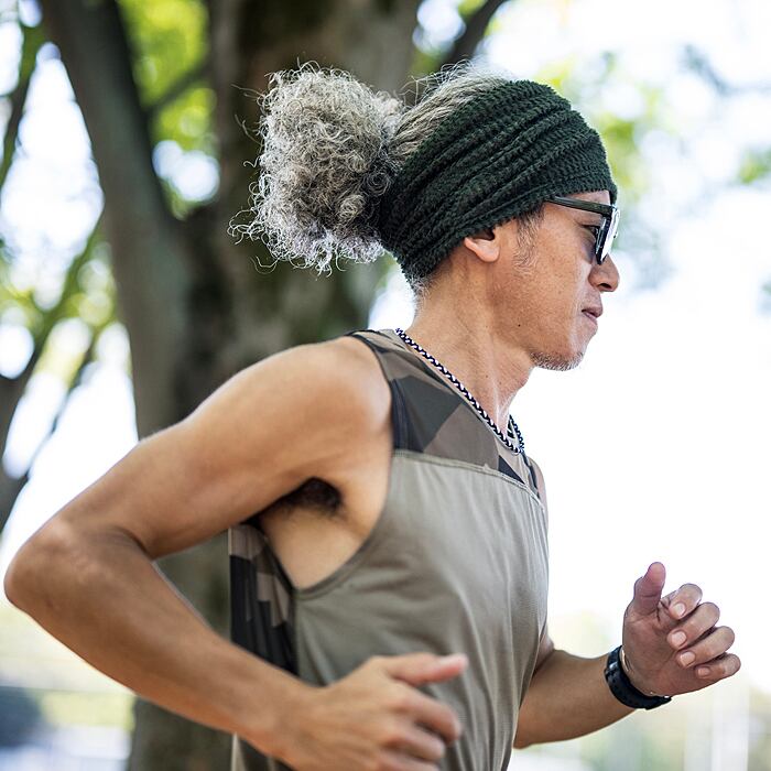 日本製のオリジナルボディは、シンプルな筒形状で首元にほどよくフィット。縫製部分をフラットに仕上げることで、長時間の着用でもストレスを感じにくい設計です。本体素材には POLARTEC® Alpha Direct を採用。アクティビティ時に保温性を保ちながら、高い通気性で汗や熱を素早く放出する超軽量インサレーションです。発熱量や発汗量の多いロード&トレイルランニングに最適な素材として世界的に評価されています。