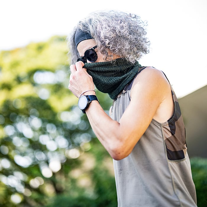軽量で携帯性にも優れたネックゲイターは、山やランなどのアクティビティで常に持ち歩きたい一枚です。