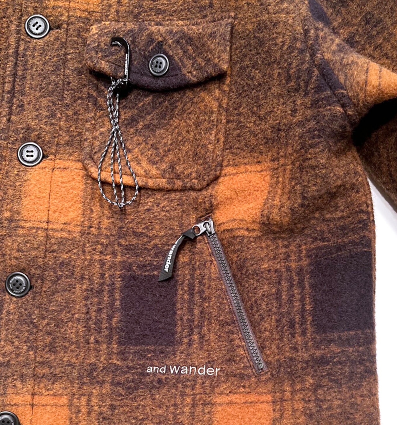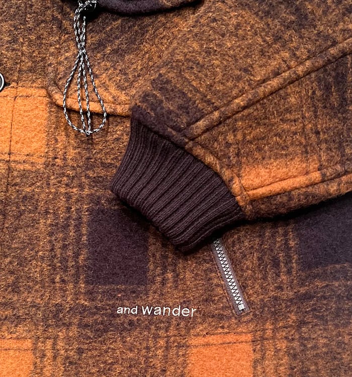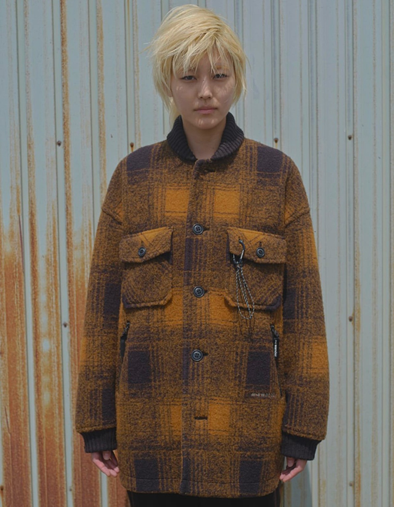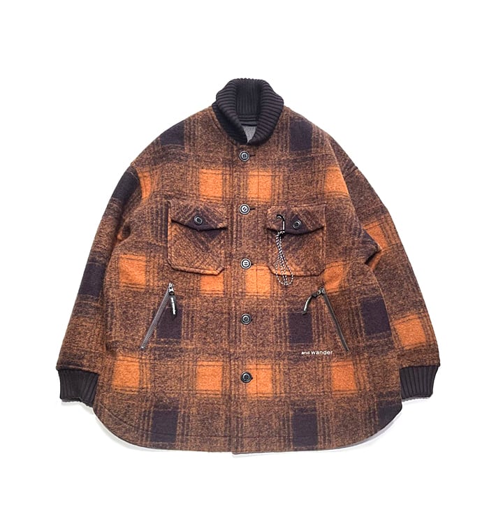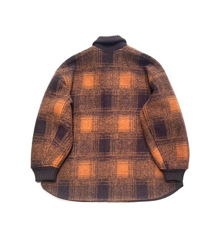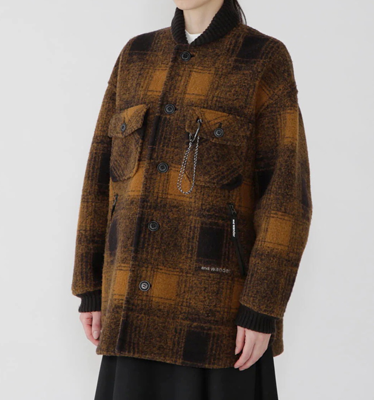 ウールポリエステルの混紡糸をオリジナルのチェック柄に編み上げ、縮絨と起毛加工を施すことで、ふっくらとした風合いに仕上げたアウター。柔らかな質感ながら適度なハリがあり、上品で落ち着いた印象を与えます。