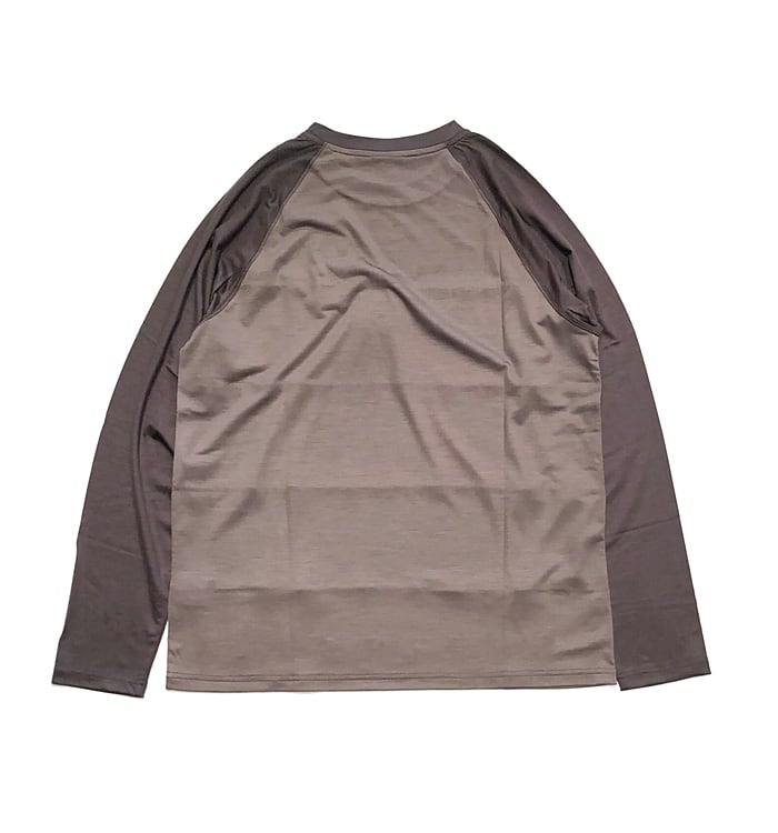 150年以上の歴史を持つイタリア老舗毛織メーカー「REDA」社のウールを使用し、ボーダー切り替えで表現したラグランスリーブのロングTシャツ。日本製のオリジナルボディは、身幅にゆとりを持たせたリラックスシルエットで、アクティビティからタウンユースまで心地よく過ごせる設計です。肩周りの可動域を確保するラグランスリーブも特徴です。