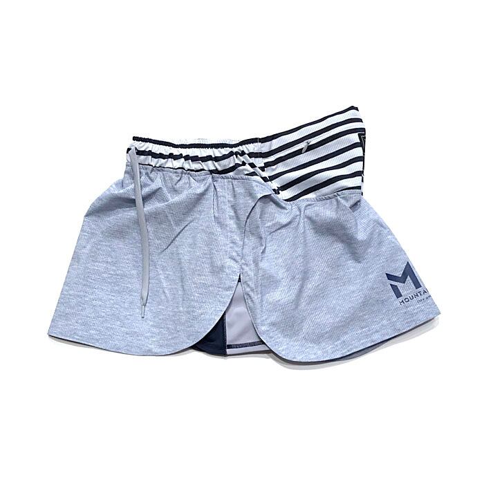 ランニングでの使いやすさを追求し、深いサイドスリットで足さばきを向上させた「Side Slit Skirt」。ディティールを見直しアップデートしたversion.2。スウェットとデニム柄の本体に、ウエスト部分をボーダー柄のグラフィックで切り替えています。