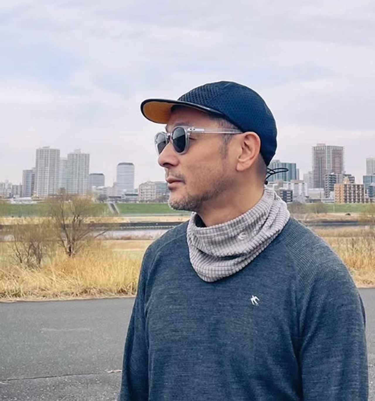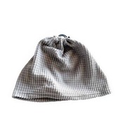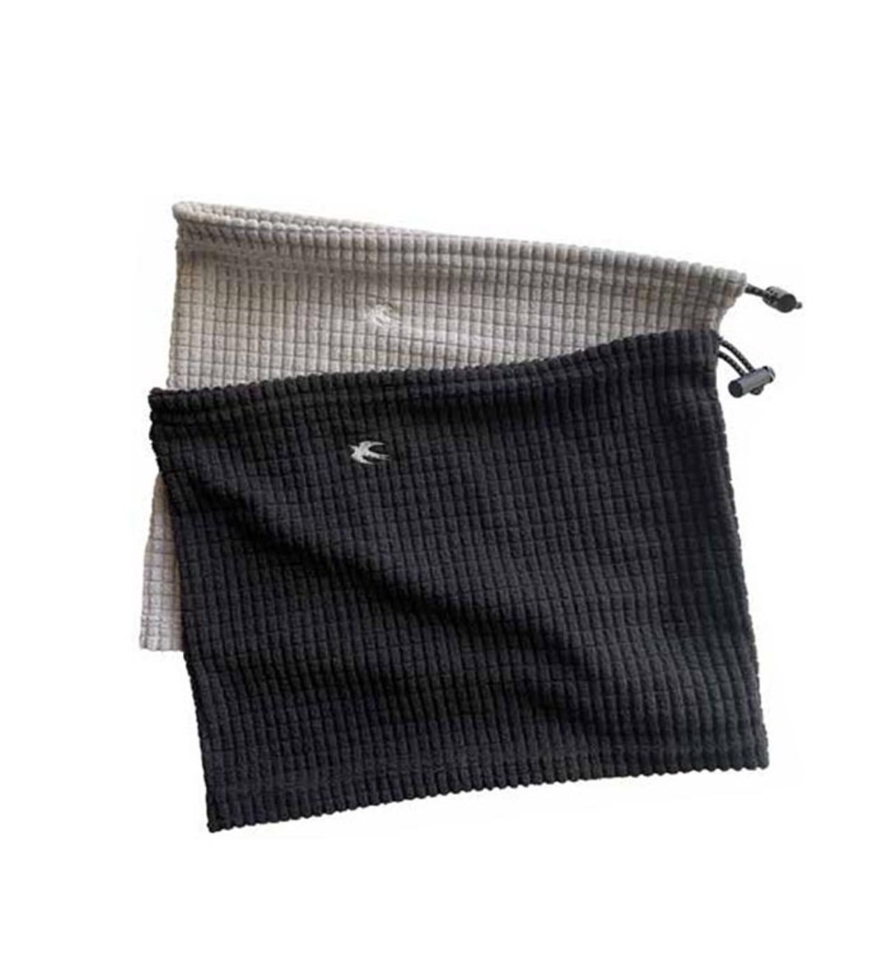 ブロックフリースを使用したスヌード。軽量で通気性が高く、熱がこもることはありません。コードを絞ることでビーニーとしても使用できます。ツバメ刺繍のワンポイント。